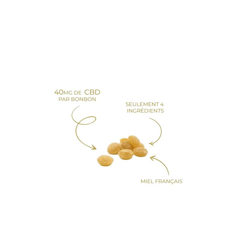 Chaque bonbon contient précisément 40mg de cannabidiol pur, méticuleusement extrait de plants de chanvre cultivés selon des méthodes respectueuses de l'environnement. Cette molécule végétale, totalement dépourvue d'effets psychotropes, est reconnue pour ses nombreuses vertus apaisantes. Le CBD interagit naturellement avec le système endocannabinoïde présent dans notre organisme, contribuant ainsi à retrouver un équilibre physiologique optimal. Sa présence dans ces délicieux bonbons au miel offre une alternative gourmande pour intégrer ses bienfaits à votre routine quotidienne.
