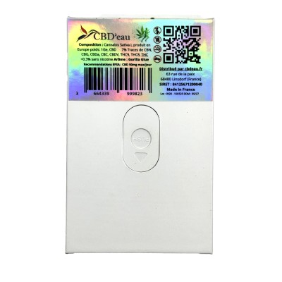 Pour préserver toutes les qualités aromatiques et l'efficacité de vos infusions CBD, conservez votre boîte d'Infusticks Gorilla Glue dans un environnement sec, à l'abri de la lumière directe et des fortes variations de température. Le système Push innovant de CBD'EAU permet une fermeture hermétique entre chaque utilisation, protégeant efficacement le contenu des éléments extérieurs qui pourraient altérer ses propriétés. Nous vous rappelons également que, pour une expérience optimale et responsable, il est recommandé de ne pas dépasser 50 mg de CBD par jour, soit environ deux infusticks selon votre sensibilité personnelle.